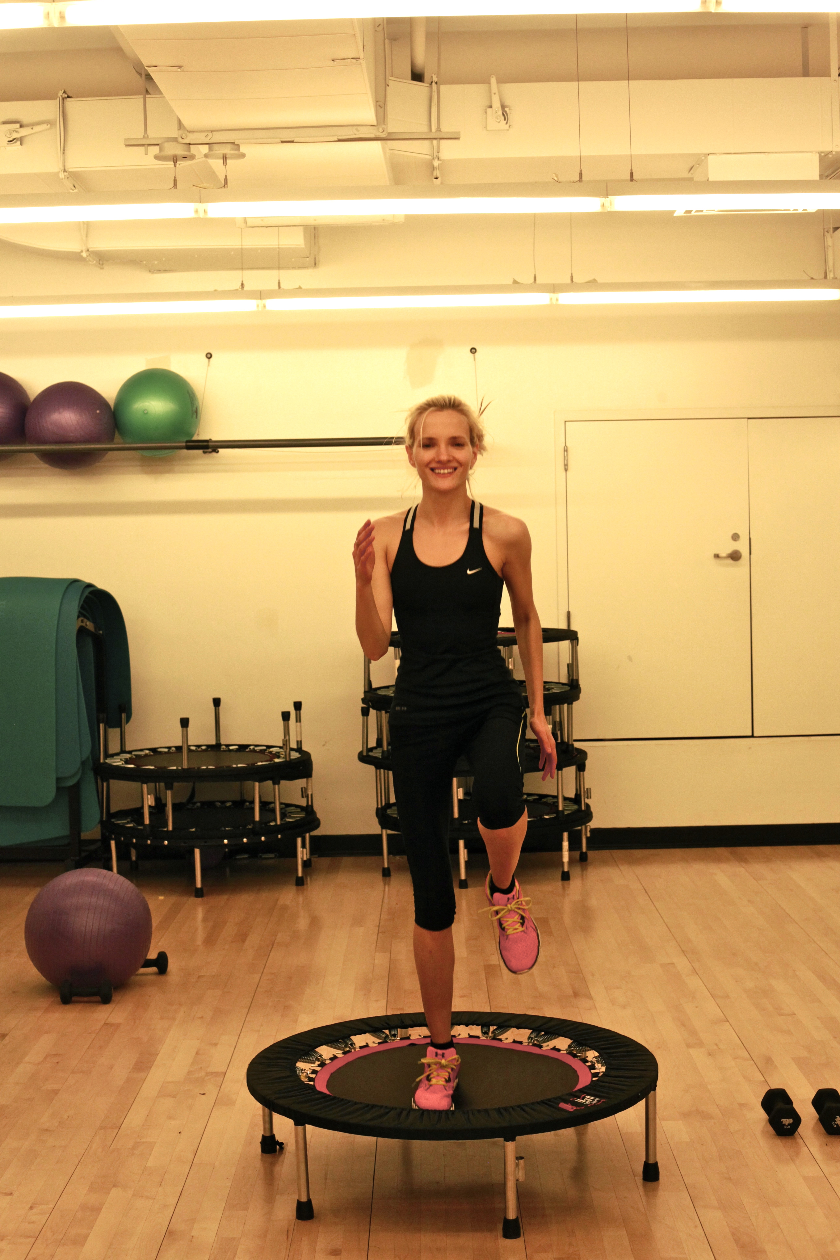 I enjoy working out a lot, it helps me not just stay in shape but also obtain a positive energy which is really a must in NYC. Unfortunately winter is my “soft spot” time, and I often lack on being consistent. Sometimes I may avoid working out for weeks (to stay sane I don’t recommend you to do this), but whenever I do I am always trying to get the most out of my work outs. Swimming is one of my favorite ways to exercise, but a dry land work out can be no less fun and easier to manage during winter time. I love to do lots of aerobic (cardio) exercises with low weights. Here are the images of some of my gym drills.